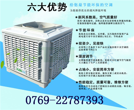 全新特點 1.節(jié)能:耗電量只有傳統(tǒng)壓縮式空調(diào)機的十分之一。 2.空氣清新、排除異味:室外的空氣經(jīng)系統(tǒng)過濾和降溫,送出清新、潔凈、低溫、富氧極高的空氣, 讓您更心怡,克服傳統(tǒng)空調(diào)頭暈,頭痛的“空調(diào)病”。 3.投資少,初裝費用低。 4.維護成本低,經(jīng)濟耐用。無須專業(yè)維護人員。 5.環(huán)保不含氟里昂,無污染 即節(jié)能又環(huán)保,投資費用又低,占地面積小,安裝簡易等特點。保證給車間一個會呼吸的空間。