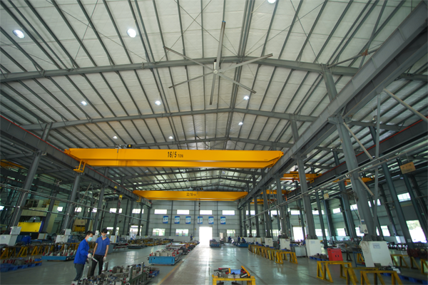 5、安裝不影響工作:風(fēng)扇安裝在離地面5.5米以上的上部空間,通過卡夾方式固定在屋面結(jié)構(gòu)梁上,不會(huì)影響任何地面工作區(qū)域正常工作進(jìn)程,安全可靠。